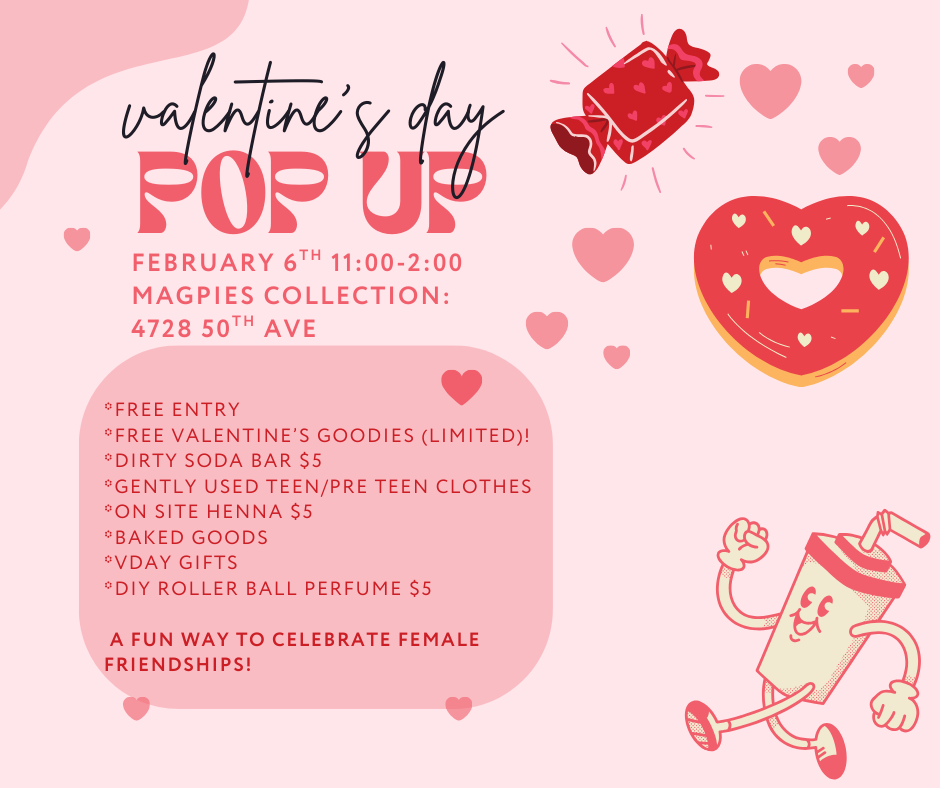 Join Magpies Collection on Feb. 6th for shopping gently used pre-teen/teen clothes, Dirty Soda Bar, Henna and make your own roller ball perfume!